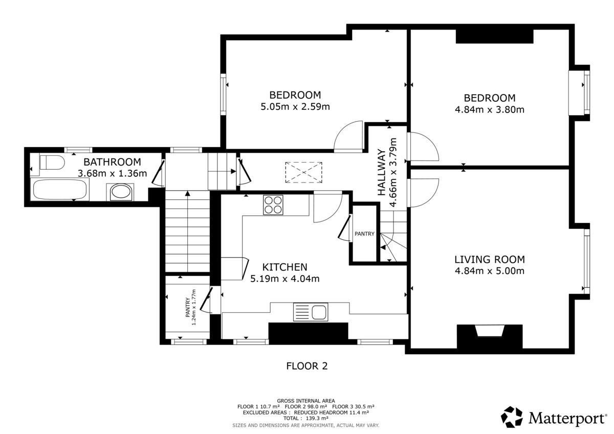 BEDROOM 2 The second bedroom for this property is located down the hallway and on the left-hand side as you approach after reaching the top of the stairs. The room is expertly crafted with a double panel window flooding the room with natural light. The expansive floor area is ideal for a tenant to craft their ideal bedroom space, filling the room with all of their favourite furnishings.
