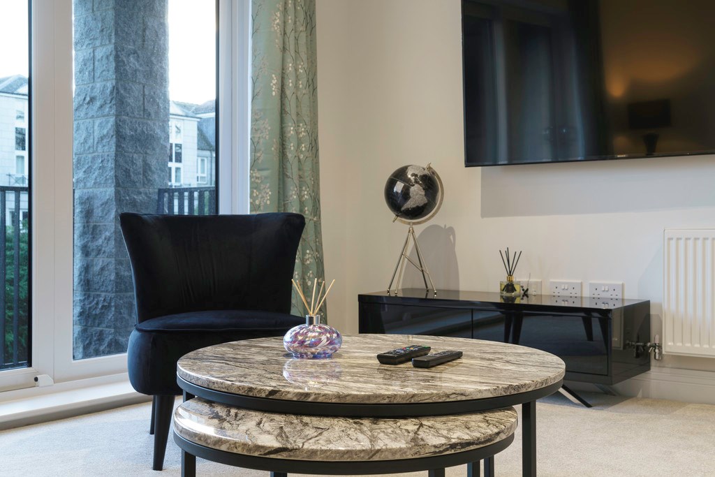 A ROYAL GEM ON KINGS GATE!! CLICK ON VIRTUAL TOUR. Luxury executive two-bedroom apartment available to let immediately which enjoys a prime location in the true heart of Aberdeen's West End. Completed to an exceptionally high standard. An abundance of natural light streams through the apartment making this bright and airy. Quality is written all over this property from a very high spec German kitchen benefiting from premium matte kitchen cabinets, solid counter tops, high quality LED lighting and luxury Siemens integrated appliances. This exclusive apartment benefits from secure vehicle access, dedicated parking and a professional high quality factoring company ensuring the grounds and the building are maintained to the highest level. Viewing is strongly recommended to appreciate the quality that this apartment has to offer.