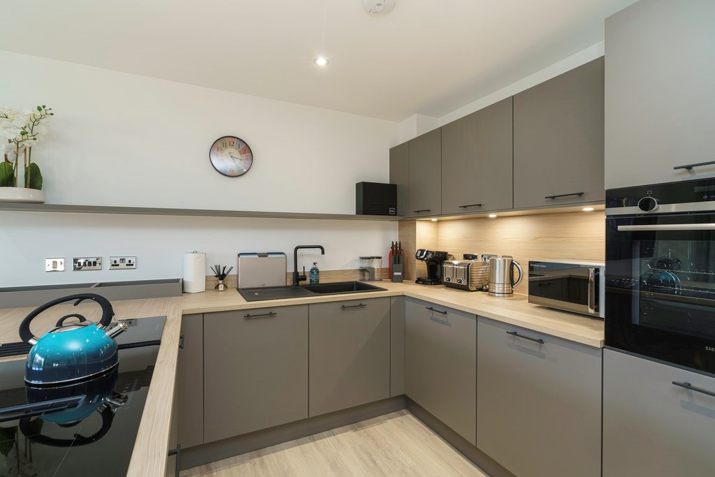 KITCHEN/BREAKFAST ROOM Modern sleek fully fitted kitchen with high quality integrated Siemens appliances. The stylish premium matte units are complimented by the solid oak counter tops. The kitchen includes a Siemens multifunction single oven in black with steel trim, Siemens microwave combination oven in black with steel trim, Siemens four zone induction hob, Integrated Fridge/freezer, integrated dishwasher, Matt black Carron 1 ½ bowl sink and a Matt black Vado Origins mixer tap. The kitchen benefits from a beautiful large breakfast bar which can accommodate up to four people, making this space ideal for entertaining. This kitchen has quality written all over and would suit an enthusiastic cook.