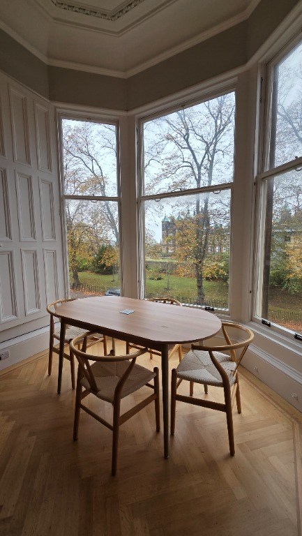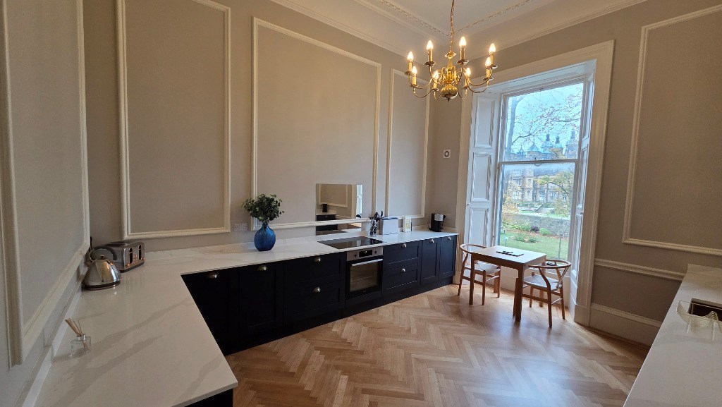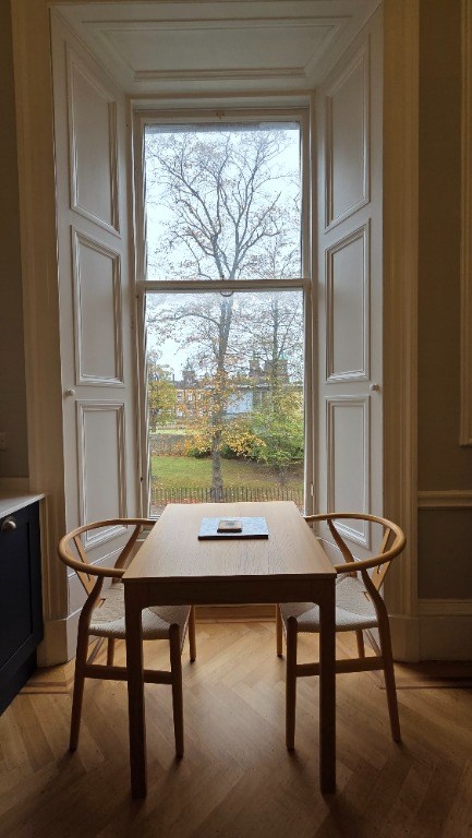 The apartment itself comprises of entrance hallway, impressive dining lounge with leafy outlook towards the Donaldson's development, a spacious dining kitchen fitted to a very high standard, two double bedrooms (one with an ensuite shower room), and a separate family bathroom with shower over bath.