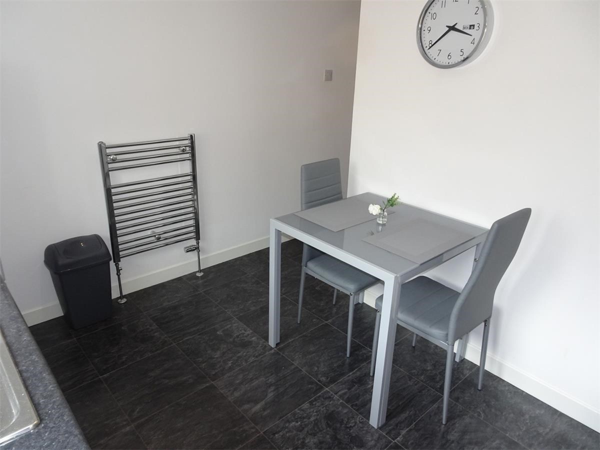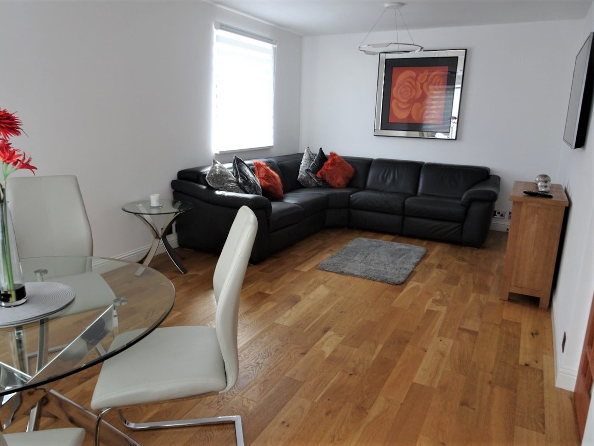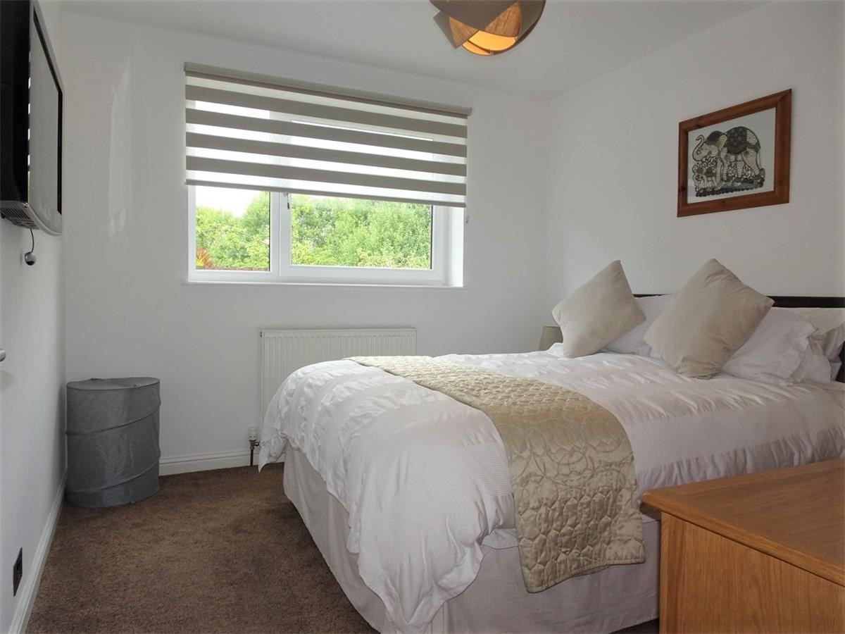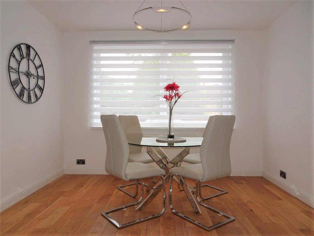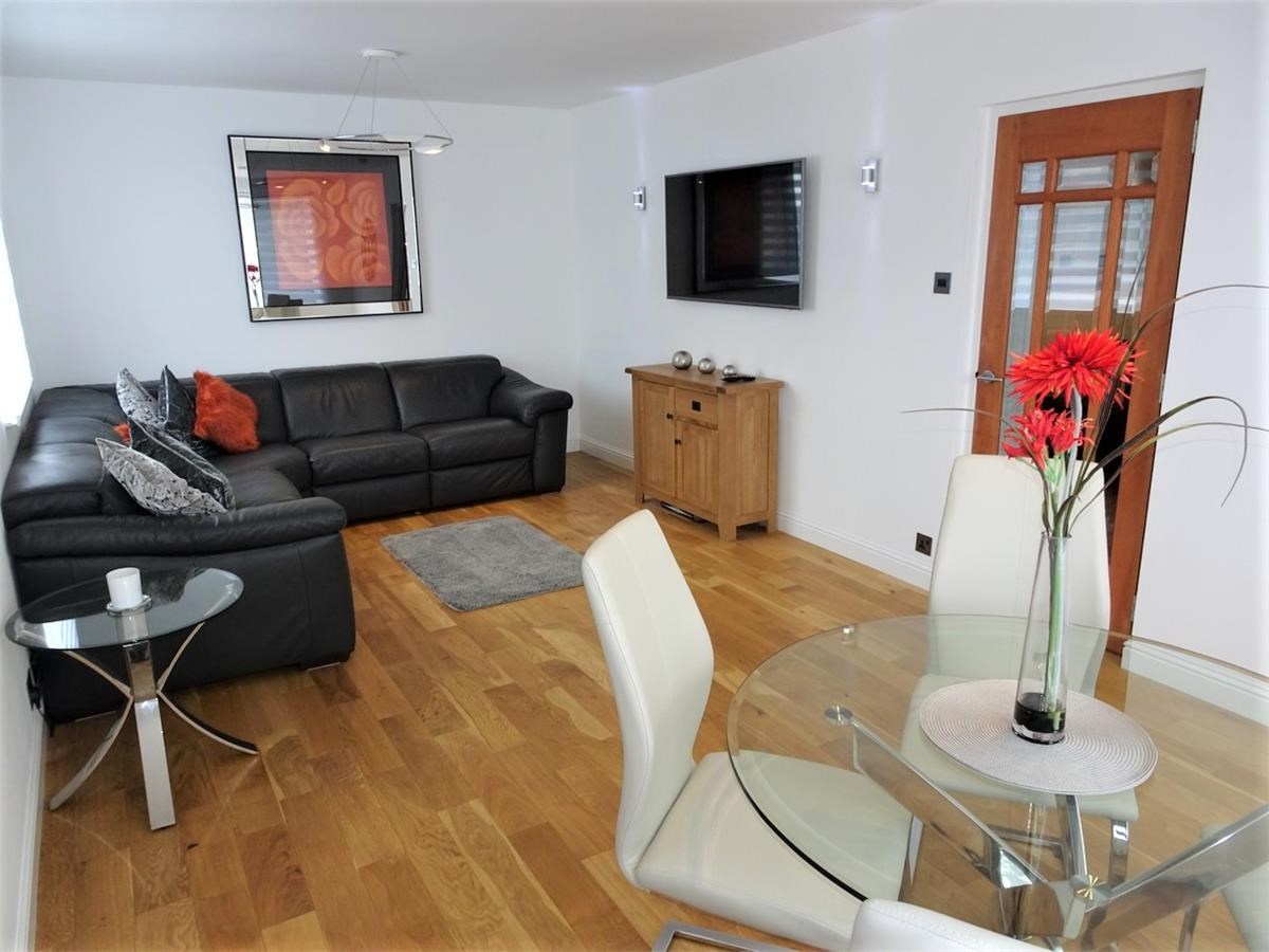 This instantly appealing and spacious room enjoys duel aspect windows to the east and south, flooding the room with an abundance of natural light. Furnished to a comfortable standard with dining table and chairs, a large L shaped leather sofa and wall mounted television. Good quality wood effect flooring. “Day and Night” style window blinds fitted.