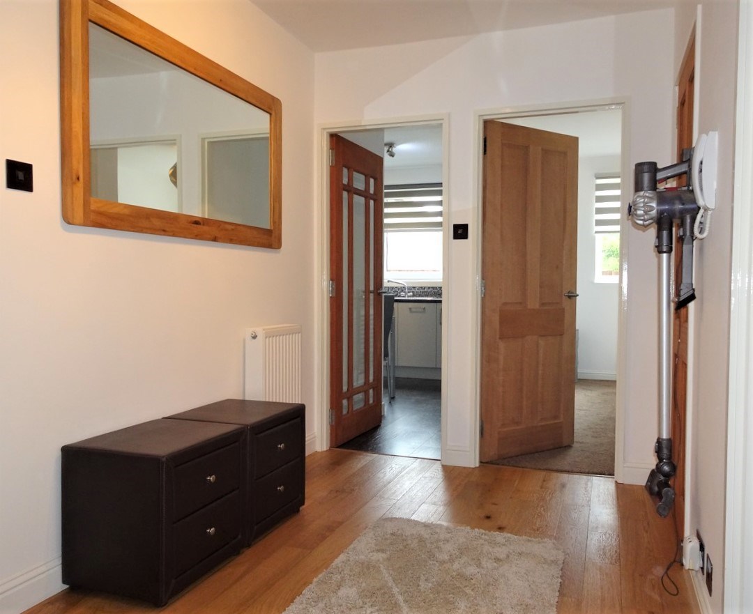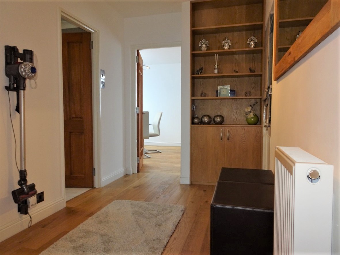 Hall: The welcoming central hall gives access to all the apartment’s accommodation. The deep hall storage cupboard is fitted with a tumble dryer. Good quality wood effect flooring to match that in the lounge dining room.