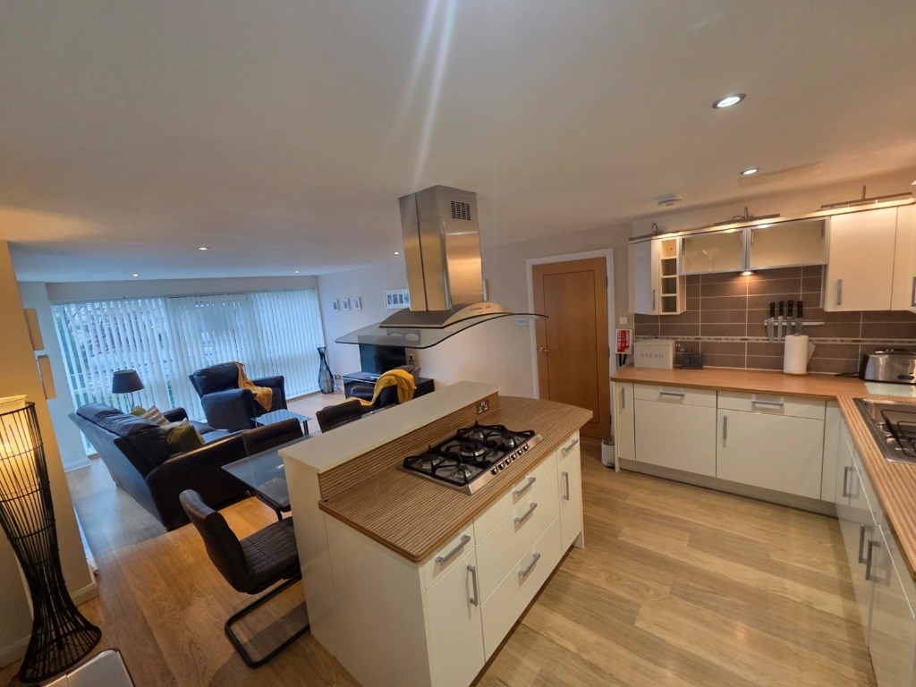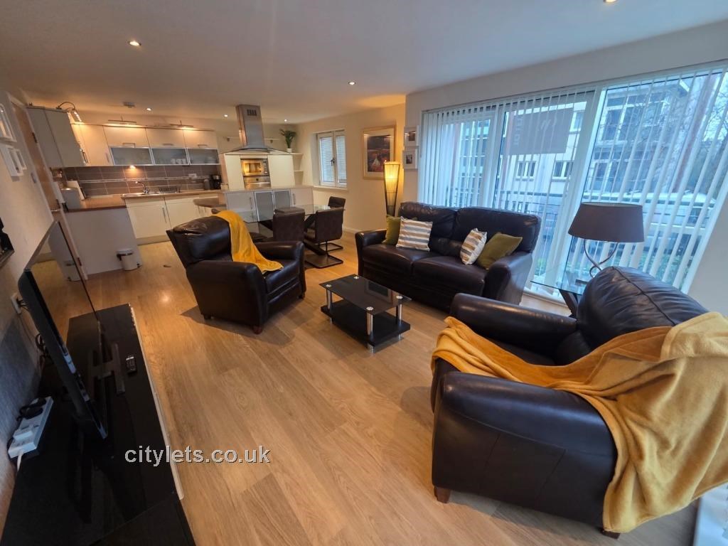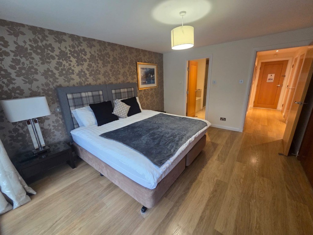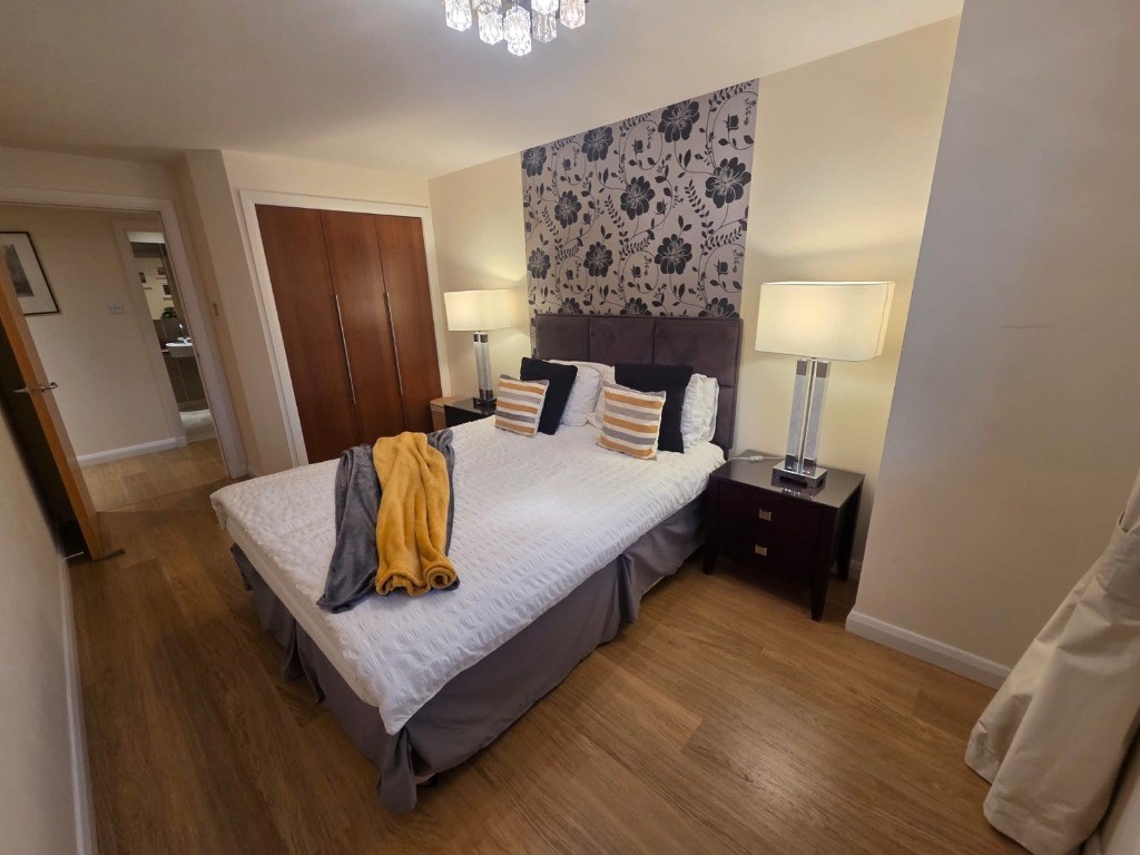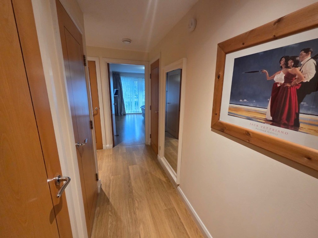 Situated on the first floor, the open plan kitchen/living room is decorated to an extremely high standard with all the usual appliances including a fridge/freezer, washer/dryer and gas hob. The living room is bright and has a fabric suite, a TV and access to a Juliette balcony. The sleek design of the master bedroom with a double bed and fitted wardrobes makes it a perfect place to call home. It also has an En-suite bathroom with separate shower cubicle. There is also a further double bedroom with fitted wardrobes and a shower room. GCH & DG throughout. Private parking is available. Viewing is recommended to appreciate the accommodation on offer. EPC rating: B. Landlord Registration Number: 146883/100/03051.