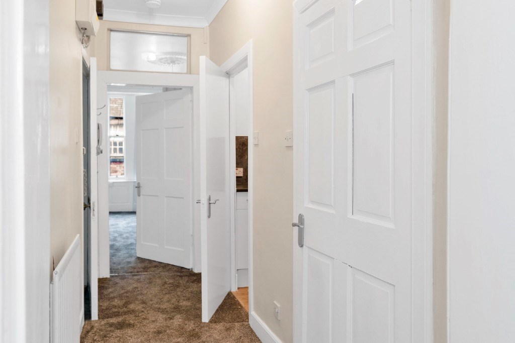This second-floor, two-bedroom flat combines period character with strong central-location appeal. High ceilings, sash-and-case windows, cornicing and an Edinburgh Press give the sitting room elegant proportions and abundant natural light.