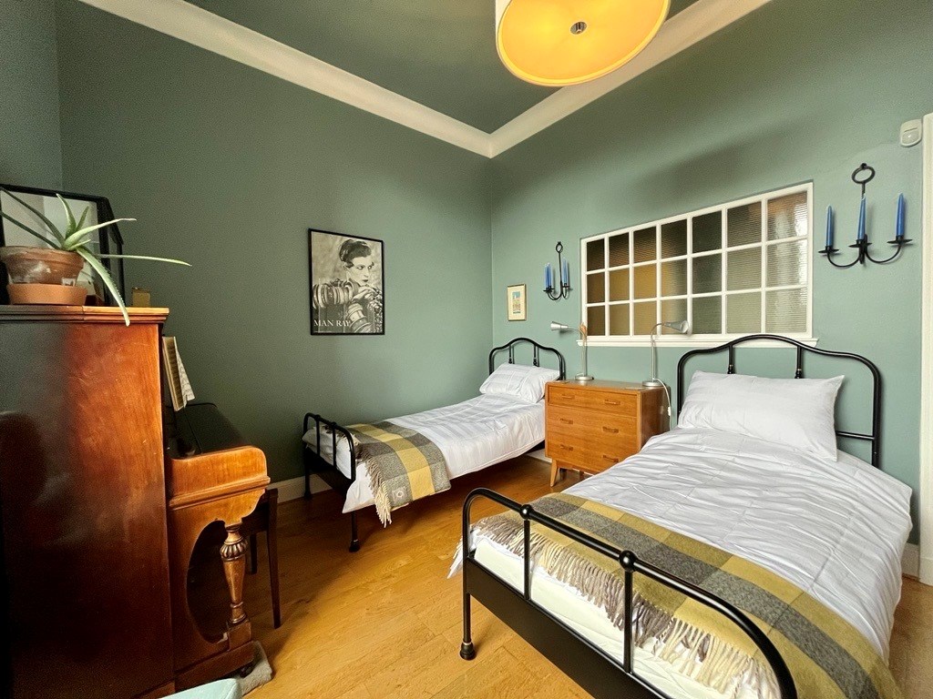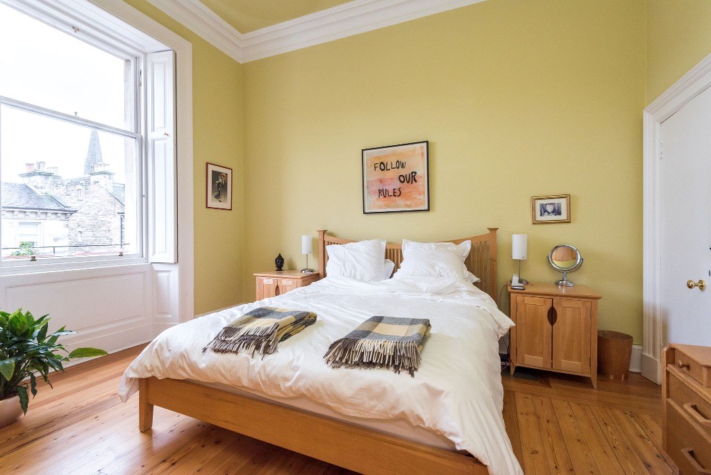 Exceptionally light and spacious 2 bedroom apartment occupying an elevated second floor position within a beautiful original building in the heart of the West End. Featuring panoramic cityscape views to the rear, key original features including cornice work and expansive sash and case windows. This property is able to accommodate up to 4 guests in one double bedroom and one twin room.