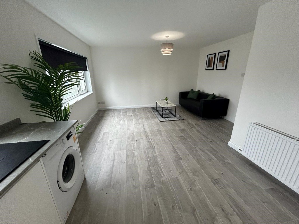 The accommodation comprises: Enter to a welcoming entrance Hall with neutral wooden flooring which leads to a bright and spacious Lounge/kitchen area, presented with neutral décor and hard wood flooring, white fitted kitchen units including an integrated electric oven/hob, extractor hob and washing machine. There is space for a small dining table and chairs. The two double bedrooms are both decorated to a high standard with fitted wardrobes. Completing the layout is the well-appointed shower room, decorated to a high standard including wash hand basin set in a dark wood vanity unit with storage below.