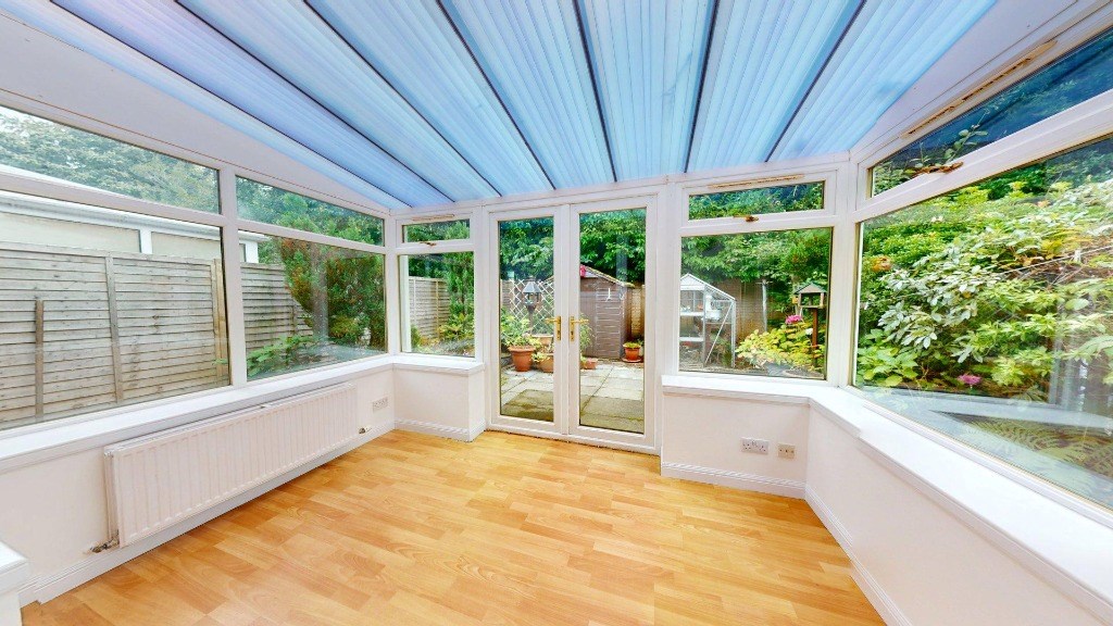 The property's layout includes a living room, Sun room, two bedrooms, hall and a kitchen, providing ample space for comfortable living. The overall design emphasizes brightness and openness, creating a welcoming atmosphere throughout this Aberdeen home.