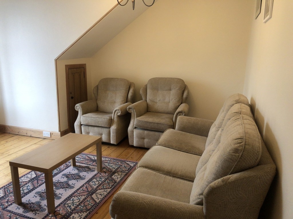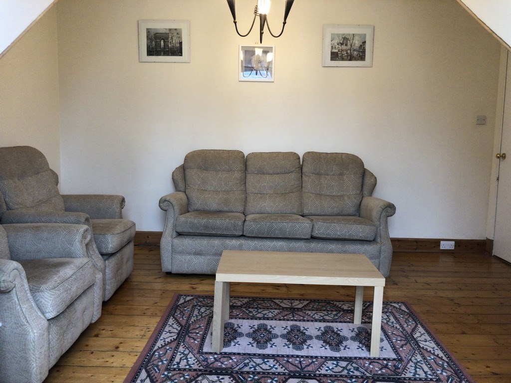 LOUNGE Bright and airy living area with large window which allows an abundance of natural sunlight to pour into the room. Comfortable fabric sofas, coffee table and wooden flooring. This room has been decorated in neutral colours and is the ideal space to host guests.