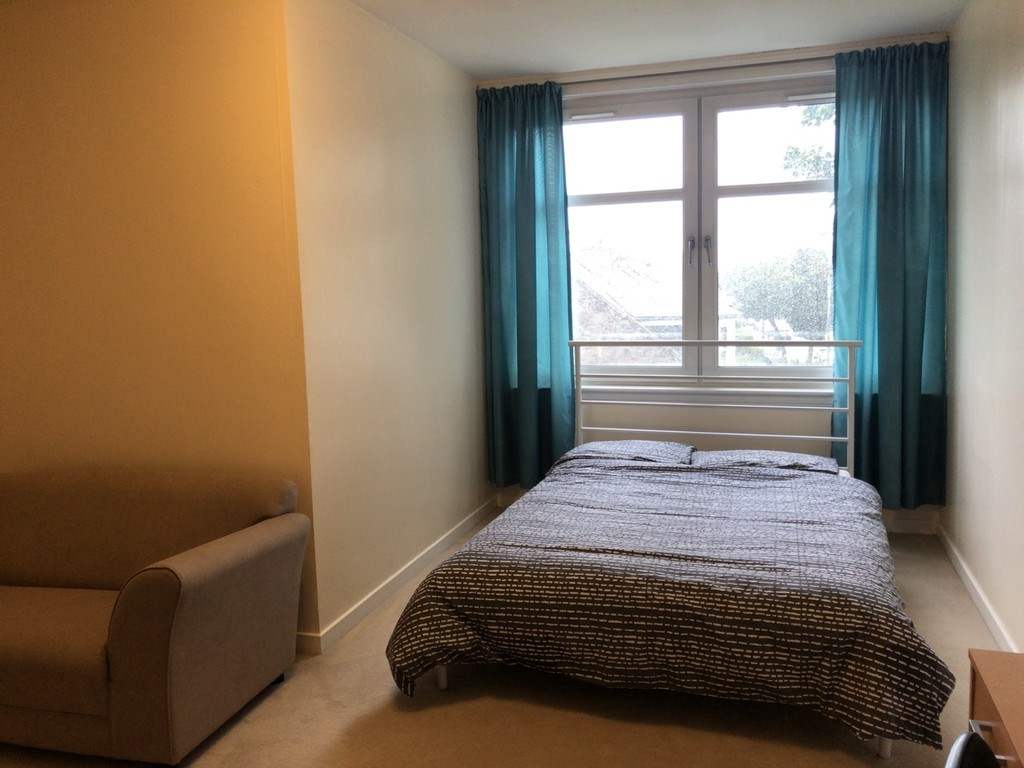 BEDROOM 3 Double bedroom with plenty of storage, large bright windows with desk and chair.