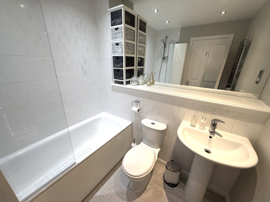 The accommodation comprises: Lovely, bright and airy lounge; modern dining kitchen with an array of floor and wall units for excellent storage, and appliances provided; 3 large double bedrooms all with built in storage, and one with modern shower room with white suite and fully enclosed shower; further bathroom with white suite and shower over tiled bath area.