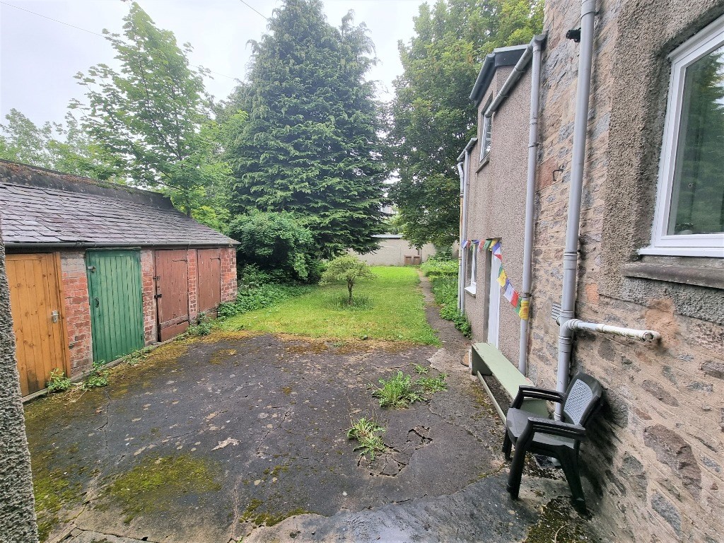 Outside there is an extensive lawn area and storage shed