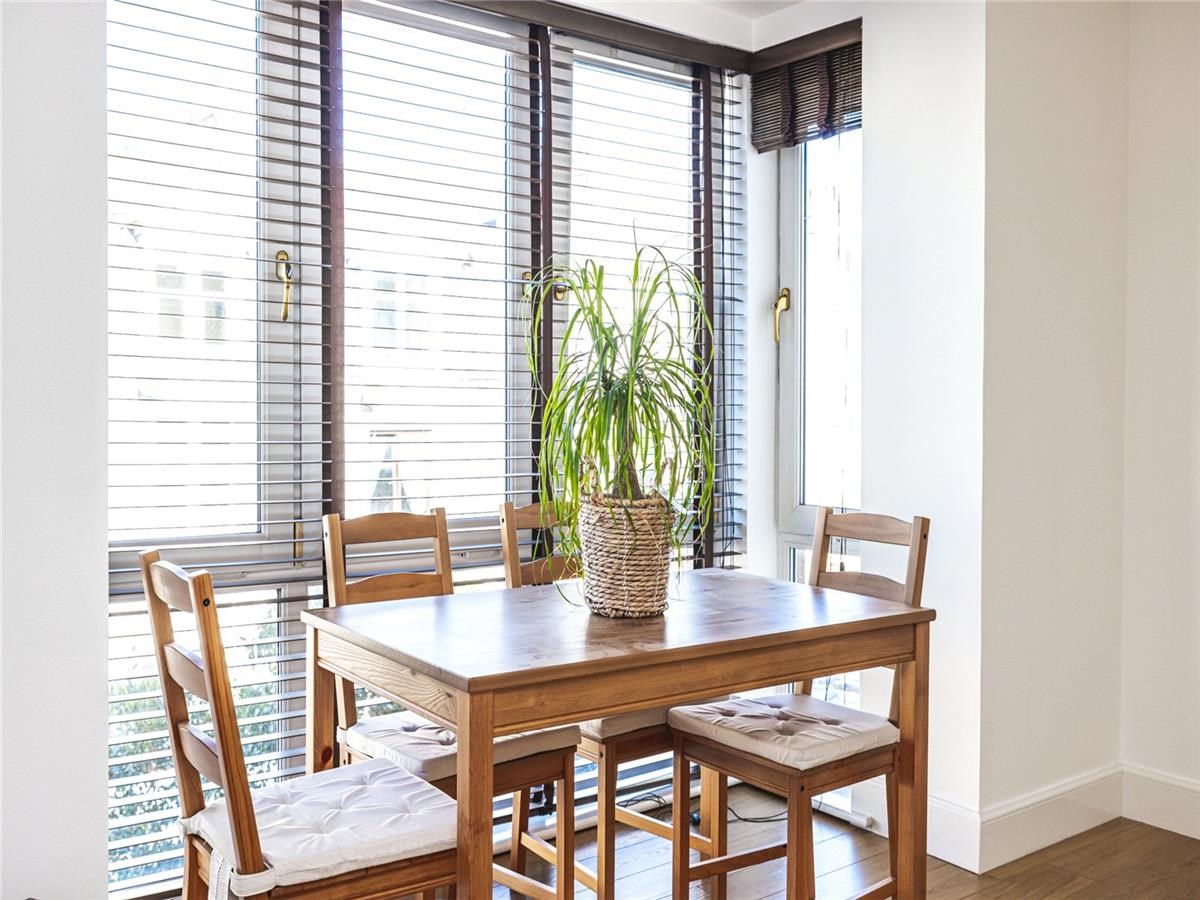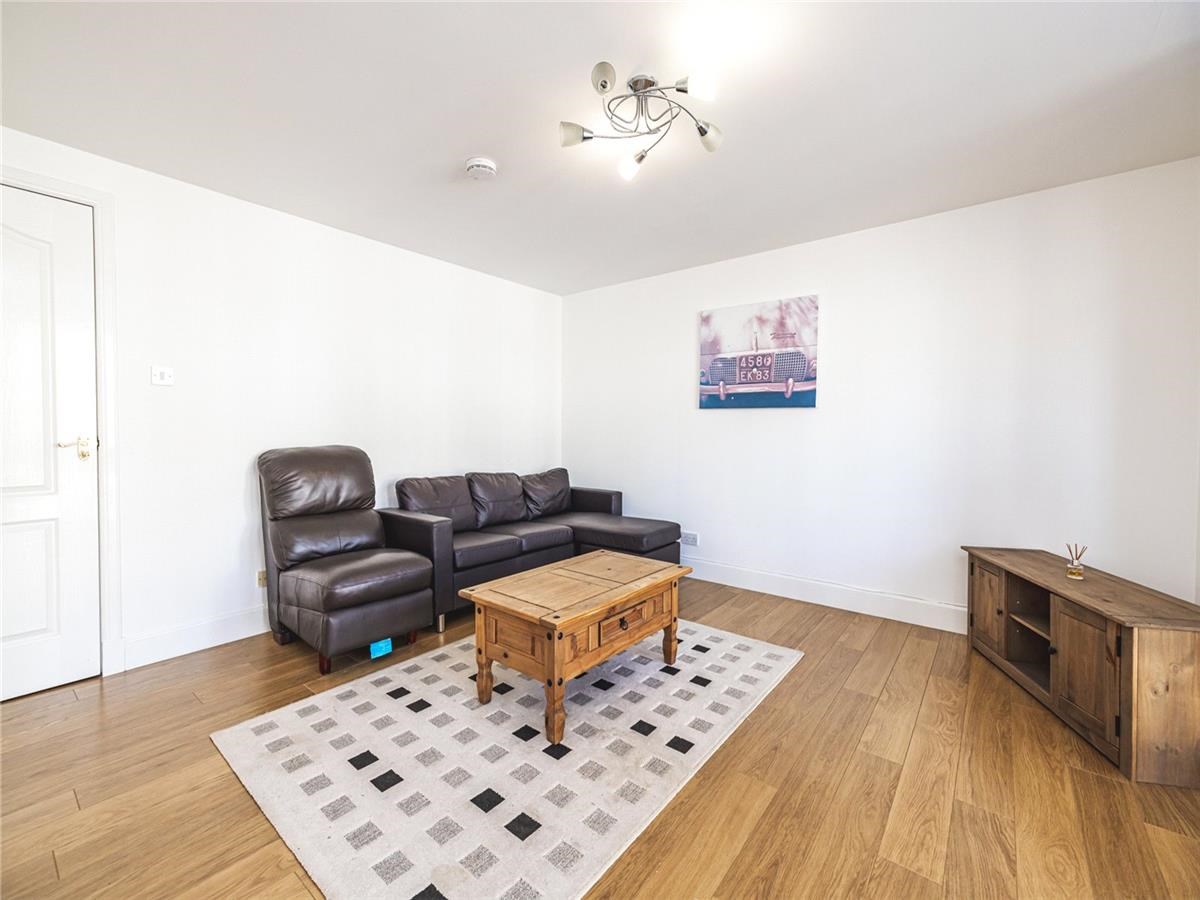 Modern, spacious lounge with a full length bay window overlooking the front of the property which allows ample natural light to flood in. Multimedia connection. Laminate flooring. (Please note the mustard sofa in the photograph has been replaced with a brown martial sofa)