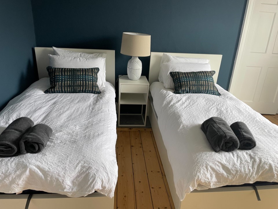 The property features a large double bedroom with a private ensuite bathroom, as well as a twin bedroom ideal for friends, family, or colleagues travelling together. A second modern bathroom ensures plenty of convenience for all guests.
