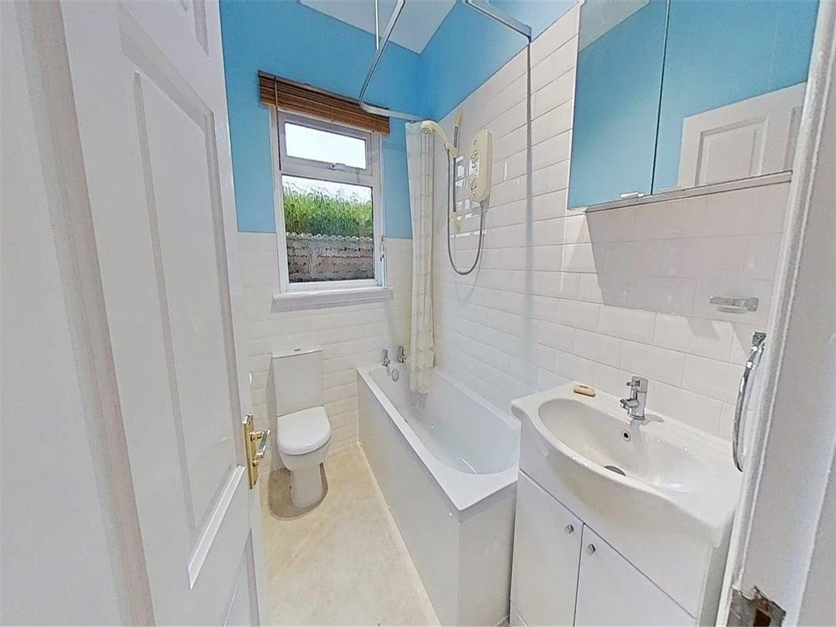 The property is offered unfurnished and comprises an entrance porch with a large storage cupboard leading into a bright and spacious lounge featuring a stunning fireplace, natural wood flooring, and double patio doors opening to the private south-facing garden. The recently renovated kitchen is fitted with grey high-gloss units, a stylish contemporary splashback, and modern appliances including an electric oven and hob, washing machine, fridge, and freezer. There are two generous double bedrooms and a modern bathroom with brick-effect tiling, a white three-piece suite, power shower over the bath, vanity unit, and heated towel rail.