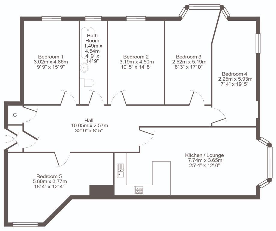 5 bedroom HMO in the vibrant Hillhead area. This bright and spacious traditional tenement flat is only a short walk away from Glasgow University.