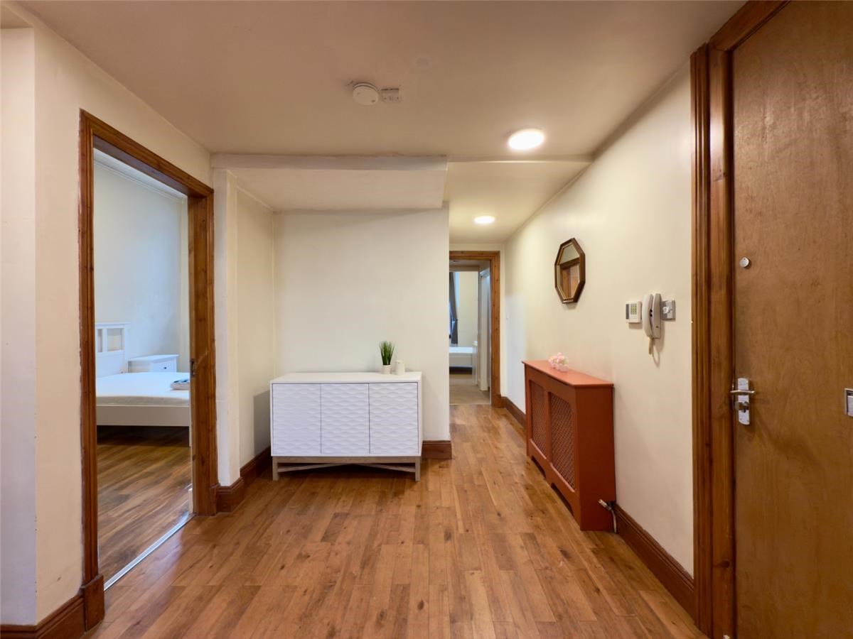 This spacious accommodation opens into a entrance hallway with laminate flooring, secure entry telephone and storage cupboard, two spacious & bright double bedrooms, spacious lounge with working traditional wooden window shutters, stylish fitted kitchen with stainless steel integrated double oven, gas hob, fridge/freezer and washing machine and family bathroom with white three piece bathroom suite and shower over the bath.