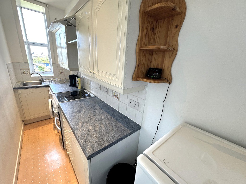 Fitted galley kitchen with plenty storage and all necessary appliances