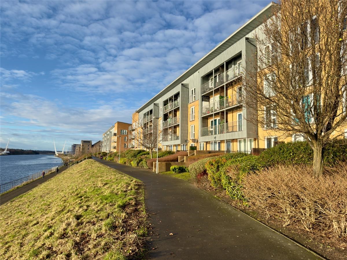 The master bedroom features a stylish en suite shower room, and fitted double wardrobe while the second bedroom is generously sized and ideal as a guest room, home office, or nursery with stunning Clyde views.