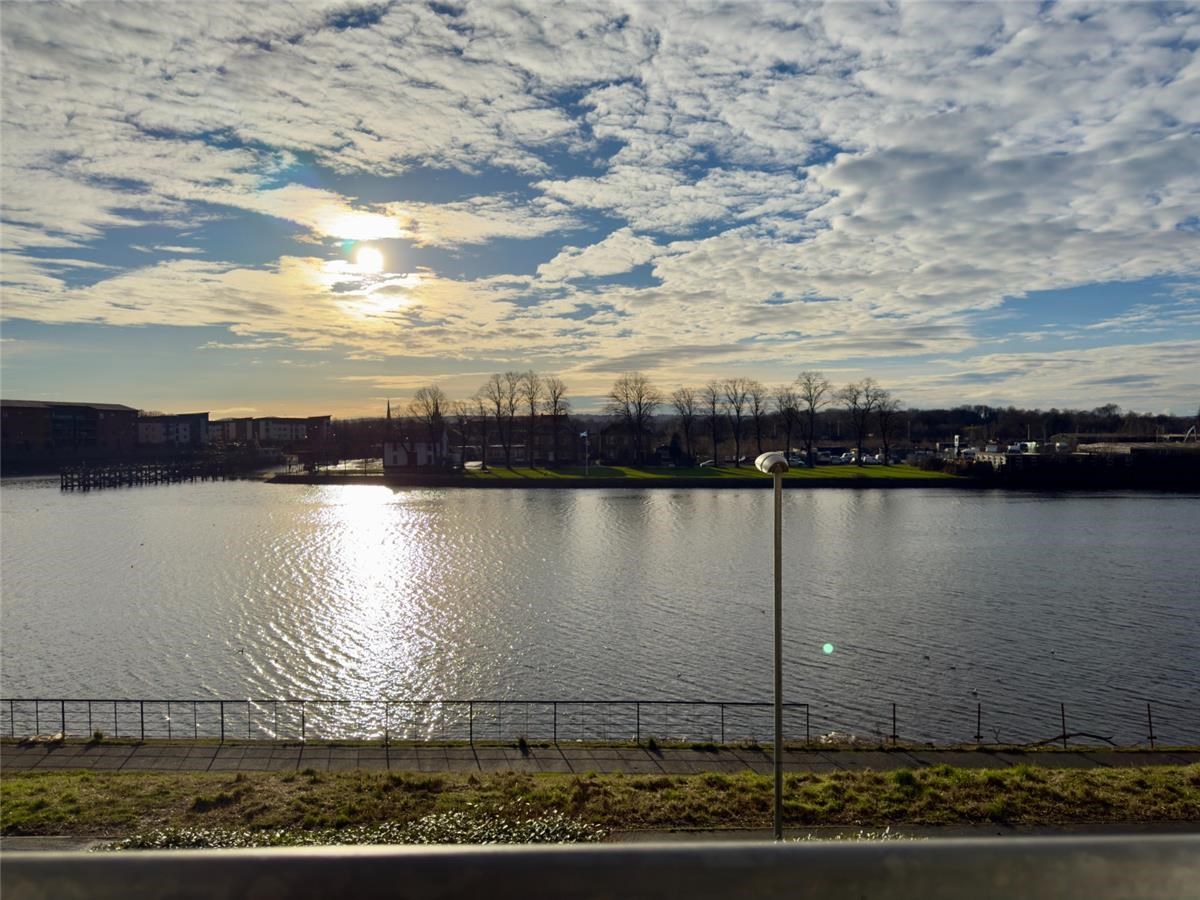 The property is accessed via a welcoming hallway (great storage) which flows effortlessly into a bright and spacious front facing lounge, where patio doors invite loads of natural light and offers uninterrupted jaw dropping views over the river Clyde. the balcony will allow for a small table & chairs. The kitchen is thoughtfully designed with ample storage, perfect for both everyday cooking and entertaining with integral fridge/freezer, dishwasher, washing machine & oven, hob & hood. There is room for a dining table & chairs.