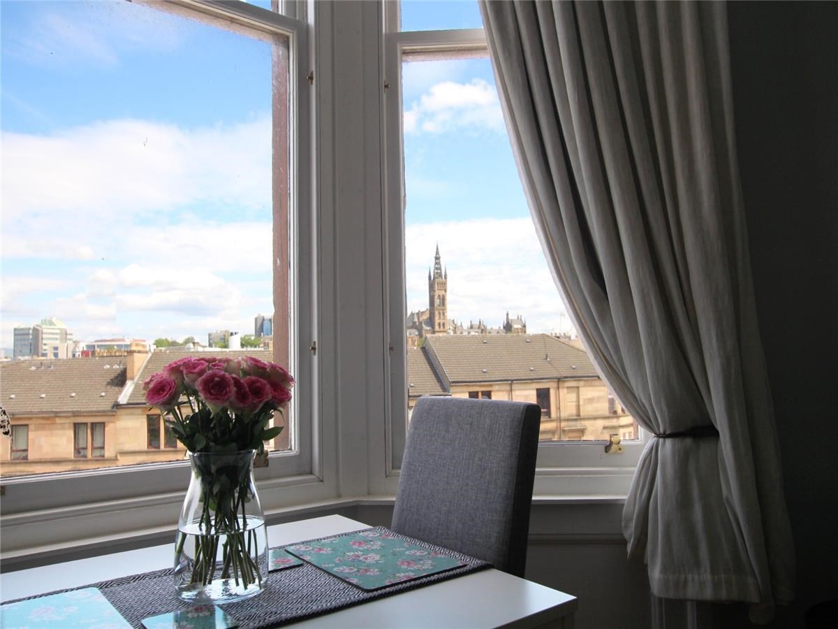 The accommodation comprises; warm and welcoming reception hallway, spacious lounge with bay window featuring views towards Kelvingrove Art Gallery, double bedroom with ample room for free-standing storage, galley style bathroom complete with three-piece suite and over-bath shower, and kitchen with appliances.