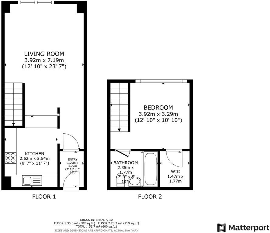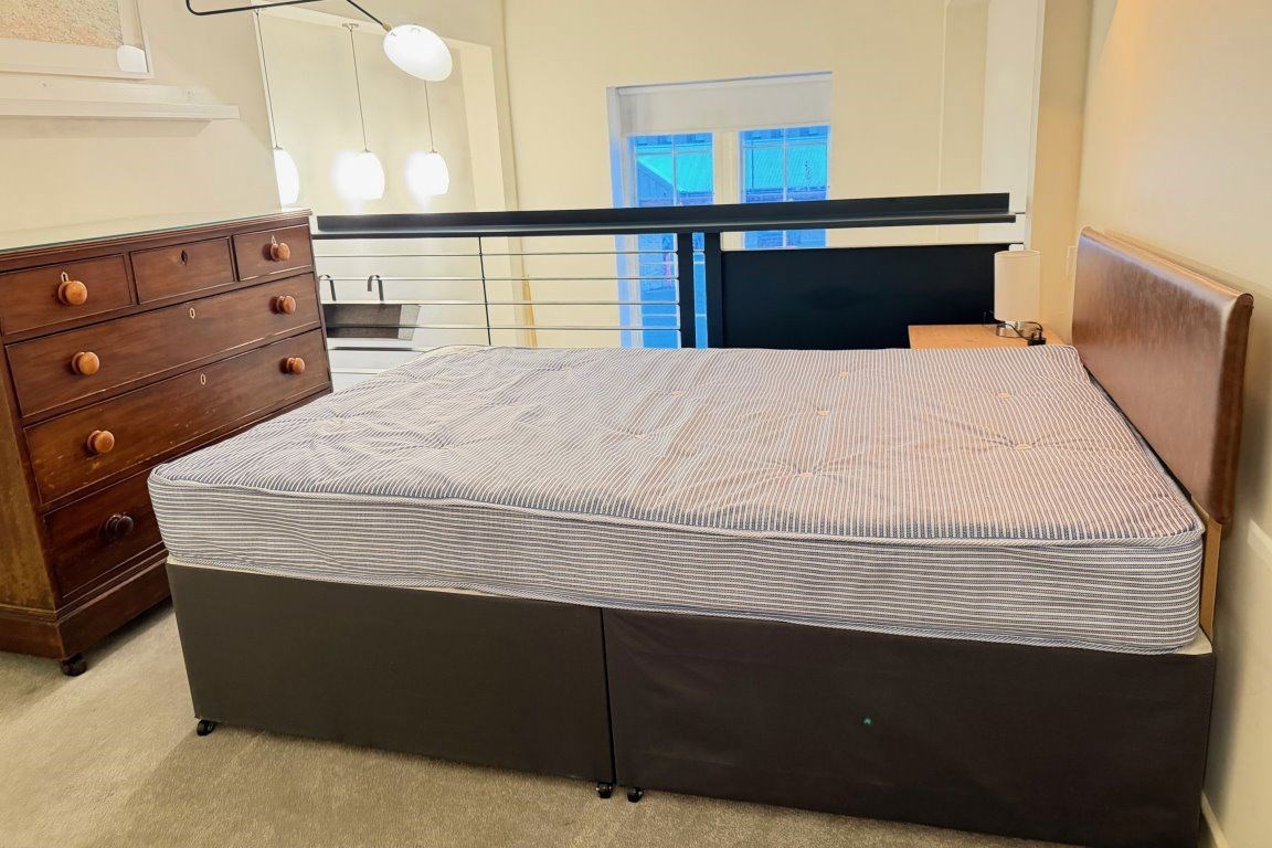 The accommodation over two levels comprises mezzanine bedroom and bathroom on the first floor while on the ground floor there is a reception hallway with cloaks hanging space, with access through to the kitchen and living area with high vaulted ceiling. There is a large double Sash window to the front which is south facing . The kitchen is modern and of a generous size with ample roll edged work surfaces along with kitchen storage units. There is a one and a half bowl sink unit, fitted electric oven grill and hob and space for all other appliances. The staircase from the living area leads to the mezzanine bedroom which features a large walk in wardrobe which also houses the hot water cylinder. There is a modern fitted bathroom with a white three piece suite, fitted electric shower, inset spotlighting and part tiled walls.